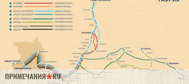 С октября поезда «Таврия» и «Таврия Экспресс», соединяющие материковую Россию с Крымом и Севастополем, начали курсировать по зимнему графику. Об этом сообщила транспортная компания «Гранд Сервис Экспресс».